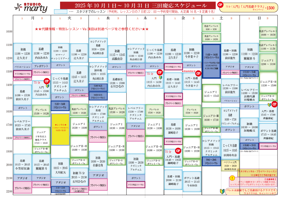 スタジオマーテイ東京三田慶応のスタジオレッスンスケジュール